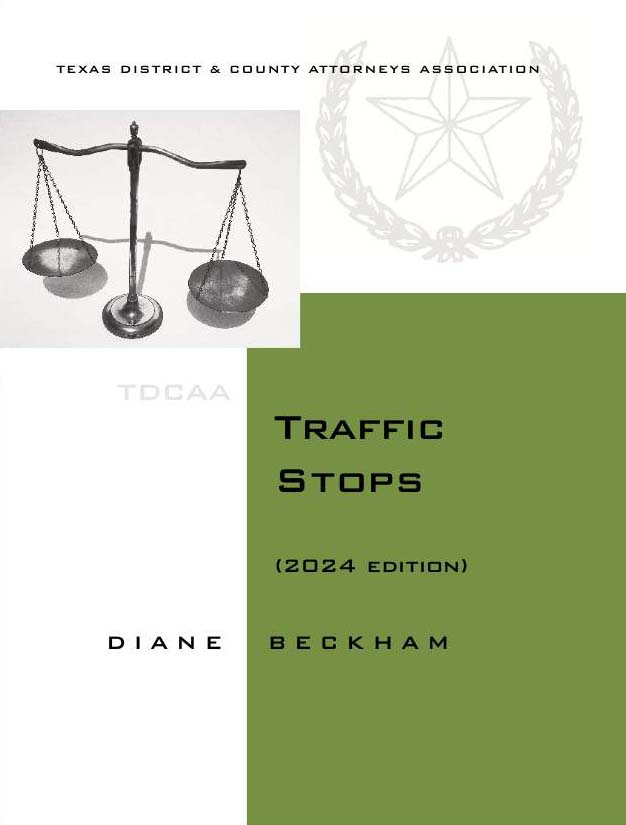 From initial sighting of a car on the road through arrest, Traffic Stops leads officers and prosecutors through the permissible ways to approach a traffic stop. Written by TDCAA Senior Staff Counsel Diane Beckham, Traffic Stops includes charts on the most common traffic offenses and important facts to know about each of them, easy-to-read tables on what officers can do at each step of a traffic stop, and plain-English summaries of what the courts have said about arrests, detentions, and searches related to cars, drivers, and passengers.